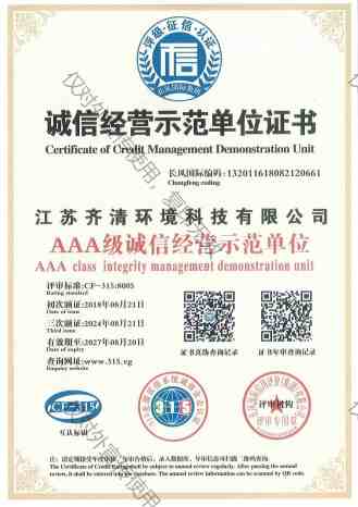 AAA诚信经营示范单位证书